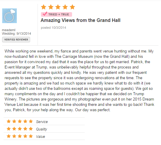 Read the rest of our reviews on @TheKnot: #WeddingWednesday #TrumpWedding