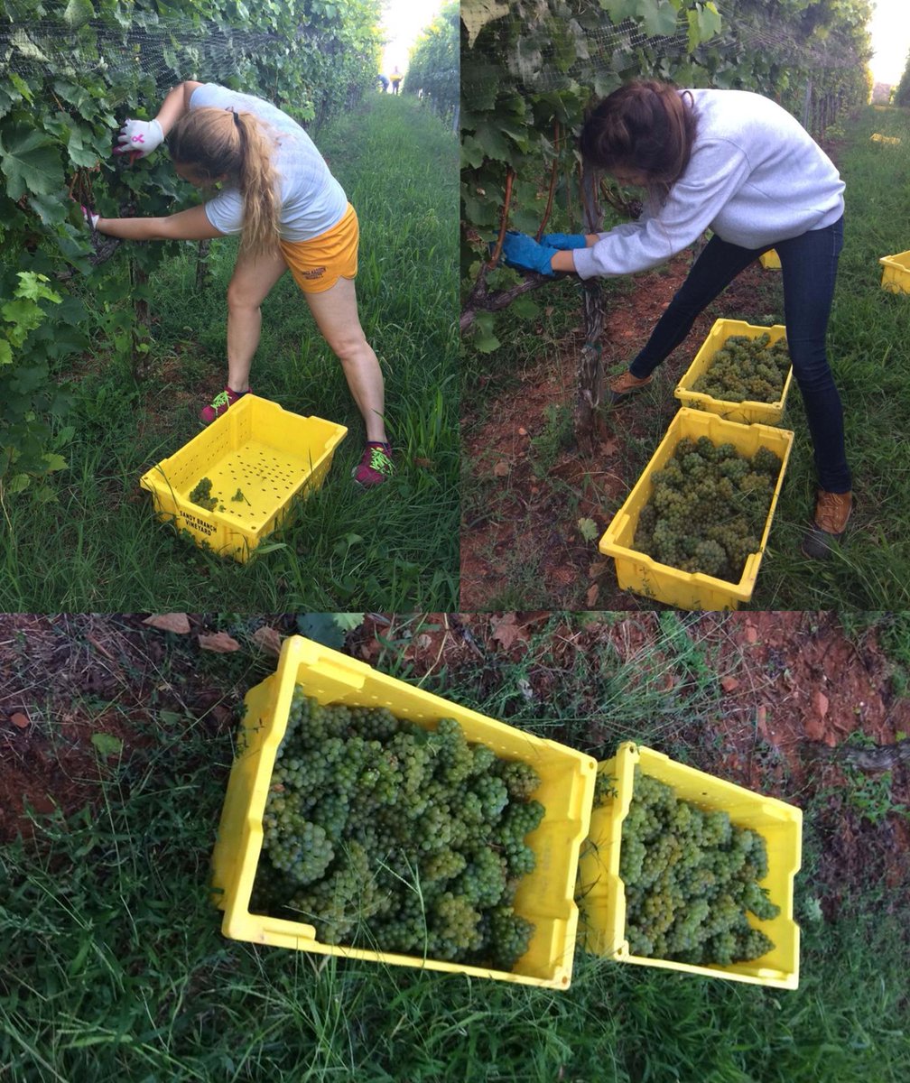 #TBT This time last year, Jacqui & Sarah harvested their 1st lugs! These grapes are available as our 2014 #Viognier.pic.twitter.com/tSiBmiUWjk
