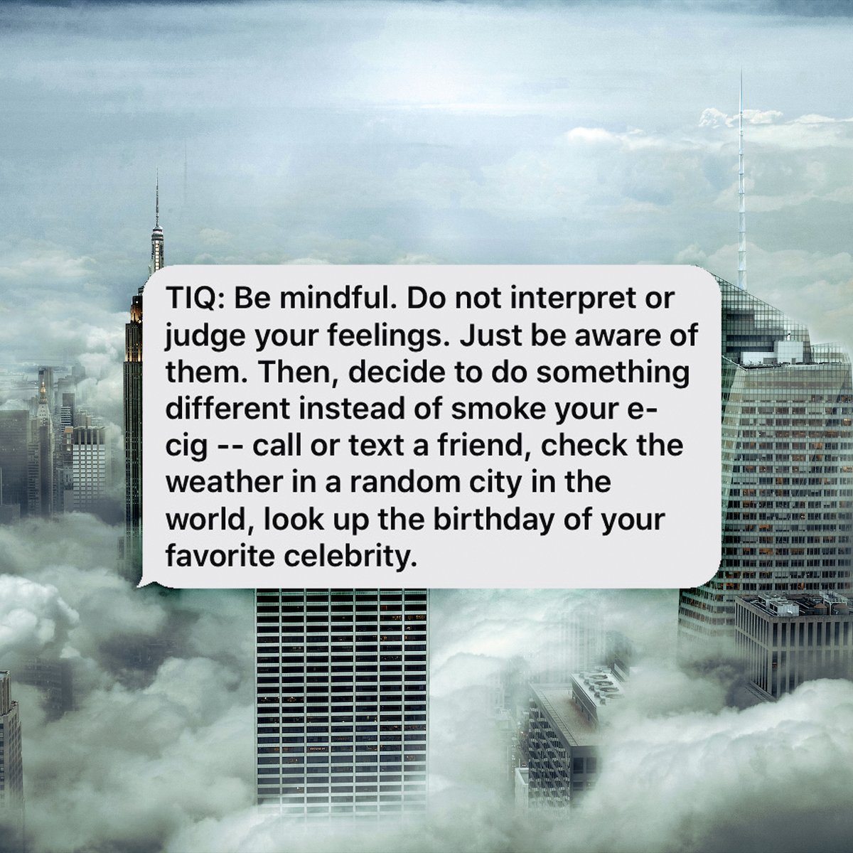 #ThisIsQuitting is a private, free, text-based program designed to help you quit vaping. You can expect tips, advice, and encouraging messages like these