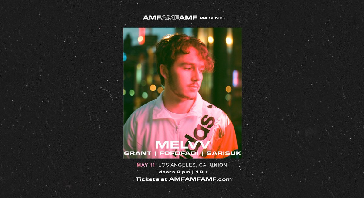 AMFAMFAMF Presents: MELVV with FOFOFADI, GRANT, SARISUK Tonight!! We got some new bangers for ya'll! Get last minute tix at: https://www.eventbrite.com/e/amfamfamf-presents-melvv-with-fofofadi-grant-sarisuk-tickets-44411174017 …pic.twitter.com/8cIiK4R6MI