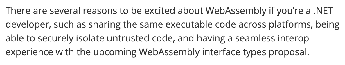 Using WebAssembly from .NET with Wasmtime https://hacks.mozilla.org/2019/12/using-webassembly-from-dotnet-with-wasmtime/ … the vision that the