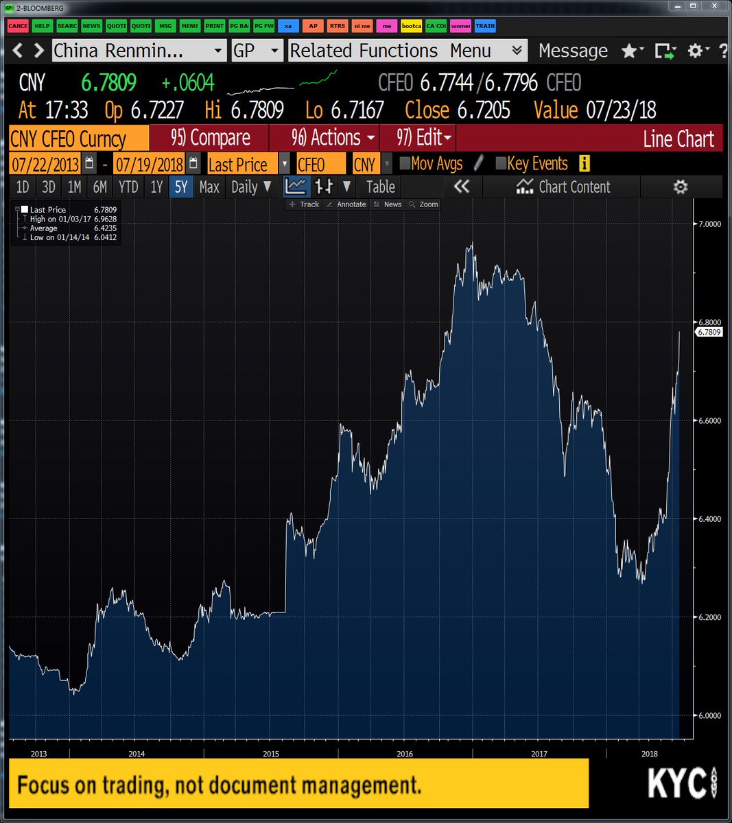 Chinese monetary policy has switched gears in the past few days - going from loosening up to support the economy to full-blown stimulus measures. Here's what it's done to the Chinese yuan. https://www.bloomberg.com/news/articles/2018-07-19/china-regulator-prods-banks-to-lend-more-as-growth-pace-eases …pic.twitter.com/q8FKkp8lSG