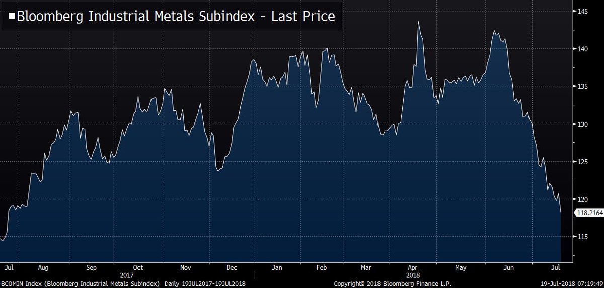 The Bloomberg Industrial Metals Subindex has been falling off a cliff https://www.bloomberg.com/news/articles/2018-07-19/global-market-calm-at-risk-as-commodities-sink-into-correction …pic.twitter.com/xxBh4W7K6S