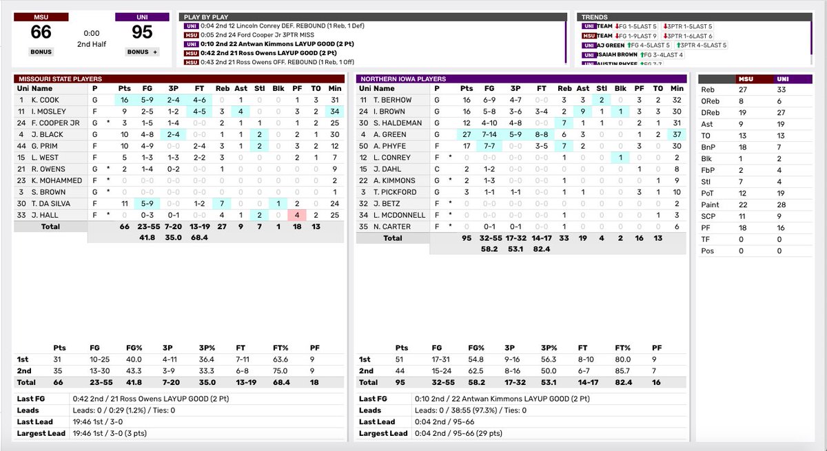 UNI beats Missouri State 95-66. Panthers improve to 18-3 overall, 7-2
