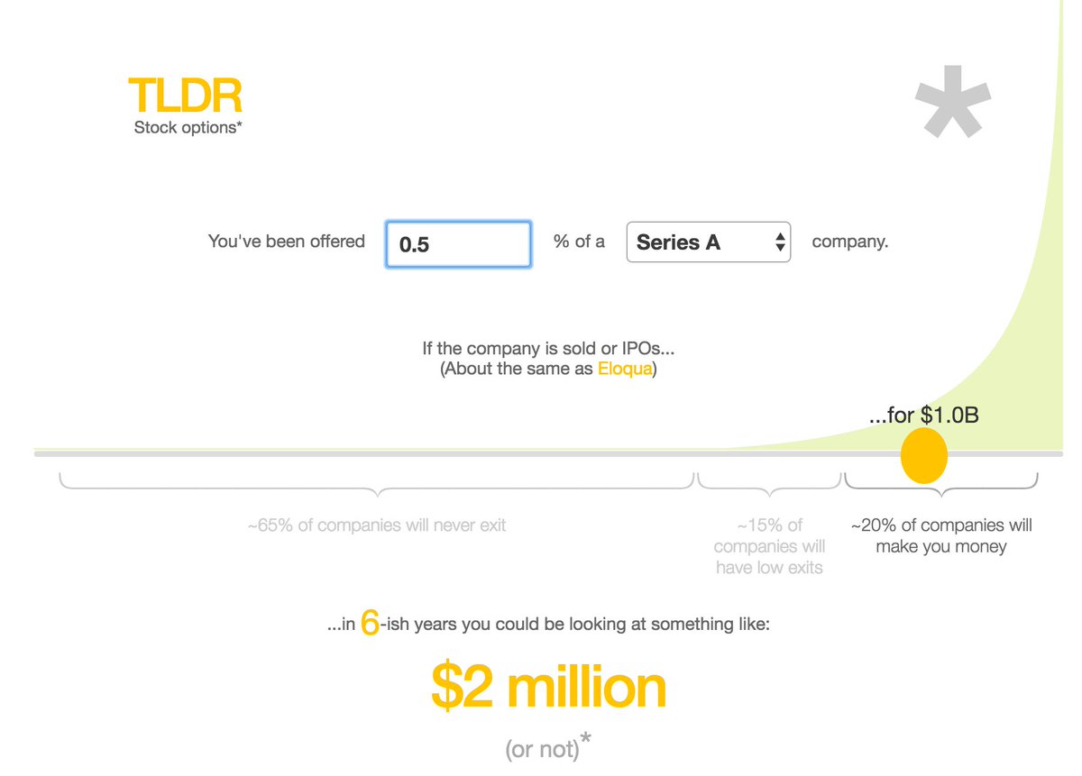 If you join a Series A startup with 0.5% equity and it exits for $1B in ~6 years, your options will be worth $2M* https://www.producthunt.com/posts/tldr-options …pic.twitter.com/dJDTRj0VSL