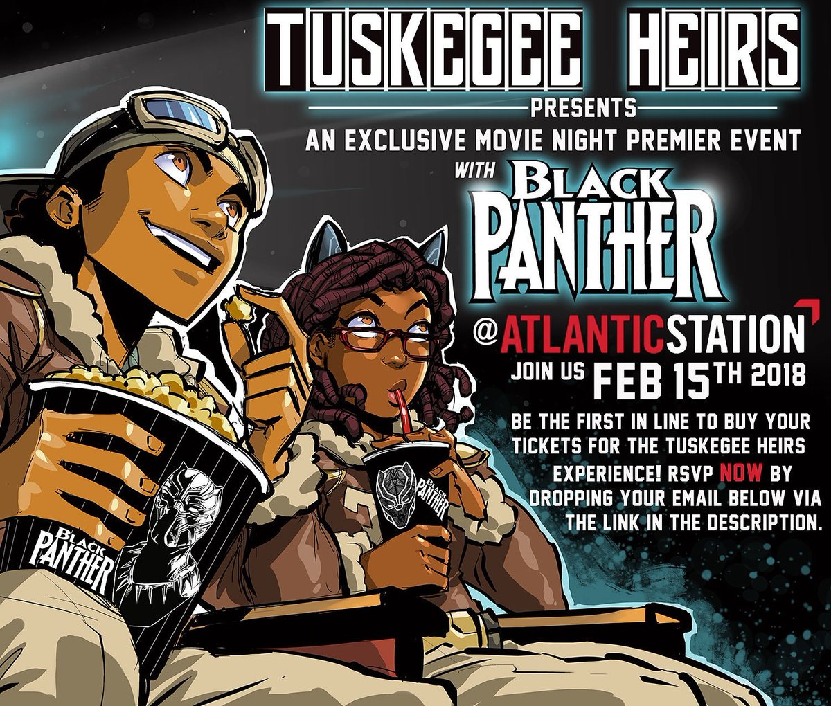 An exclusive movie night Premiere event with Black Panther hosted by Tuskegee Heirs! https://m.facebook.com/story.php?story_fbid=1964260476924527&id=1200442636639652 …pic.twitter.com/ZGjUhGqqJQ