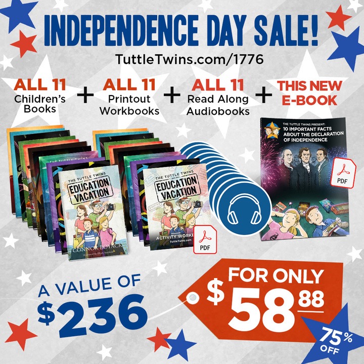 • All 11 Tuttle Twins books • All 11 accompanying printable workbooks • All 11 audiobooks • Plus a new ebook about the Declaration of Independence!