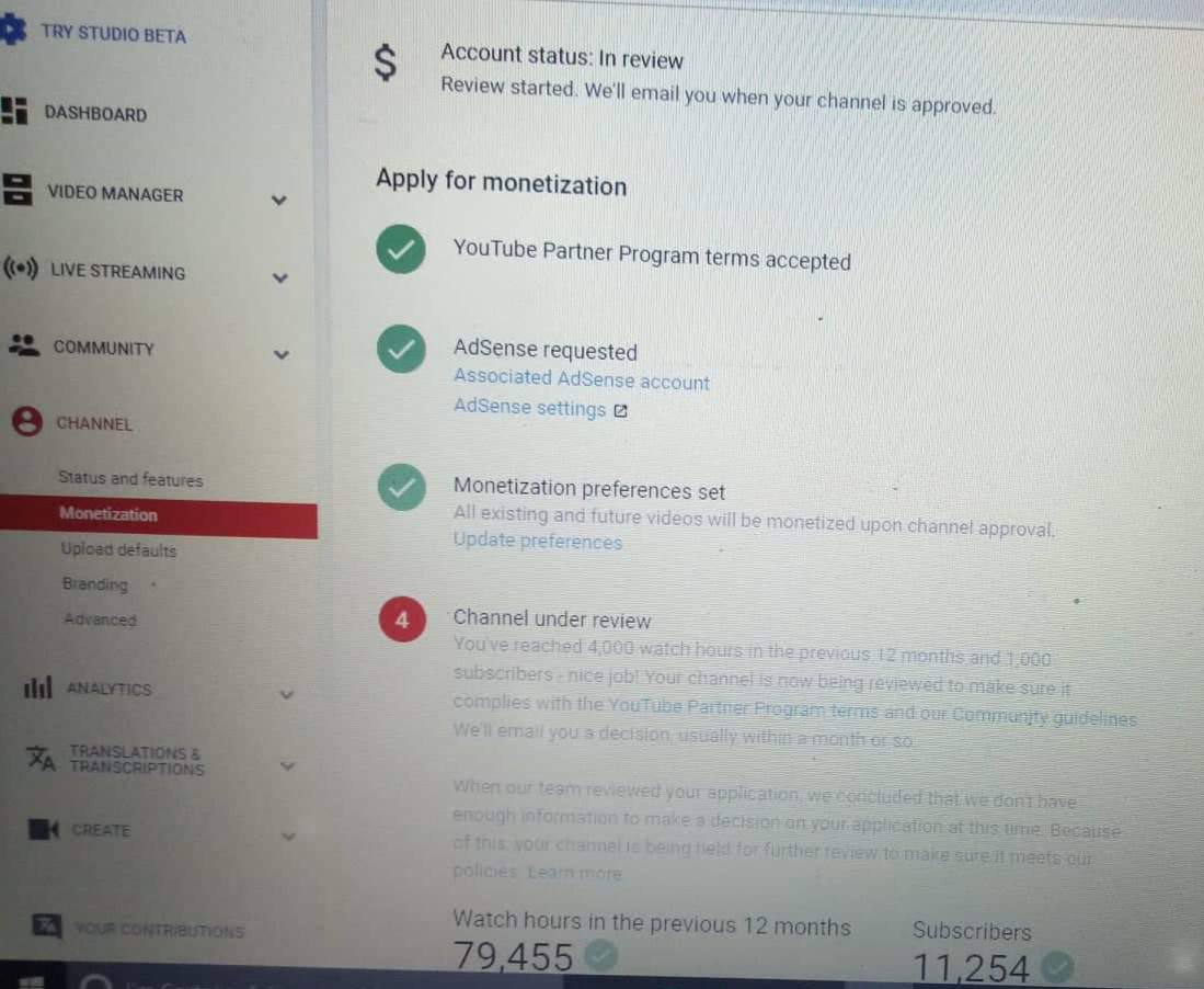 I've enough public watch hours & i also follow the YouTube policy accurately. Please have a look on my channel. I've been under review since 10 months.pic.twitter.com/GSd4ajcHGN