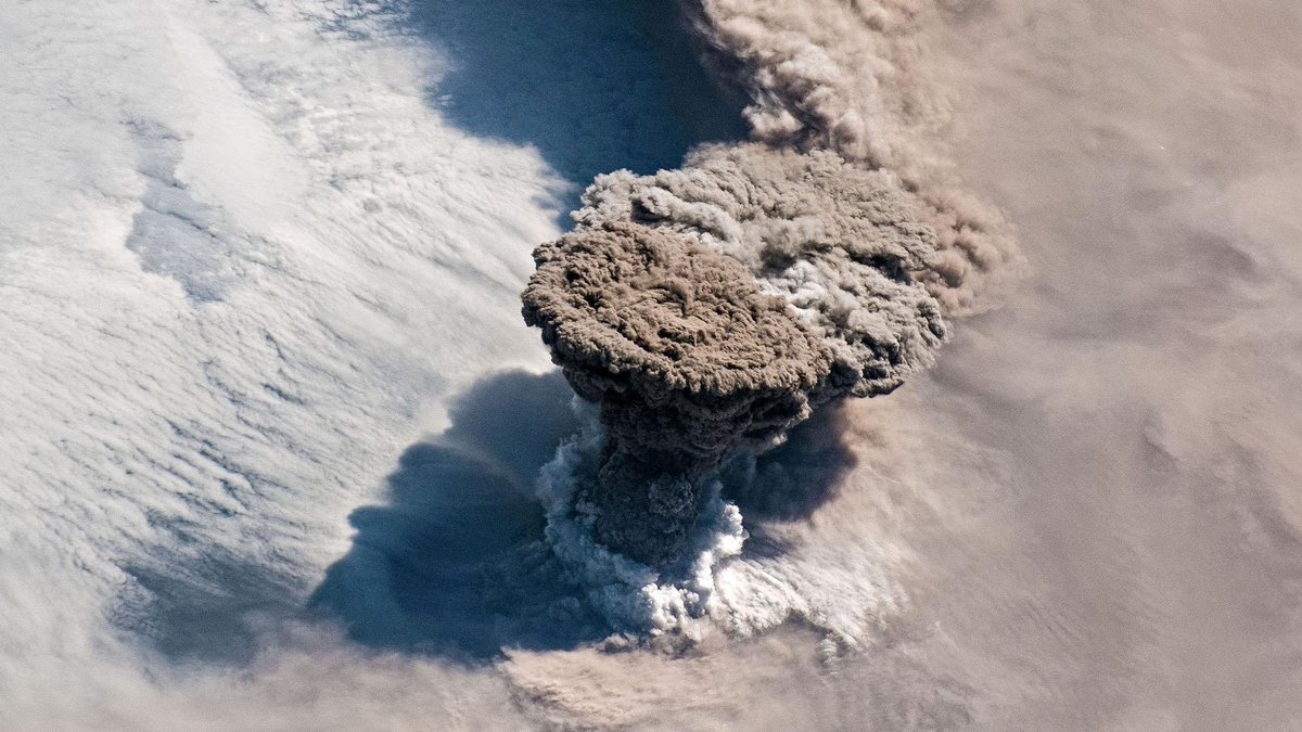 Фото дня: Облако дыма и пепла после извержения вулкана Райкоке на Курилах, вид из космоса