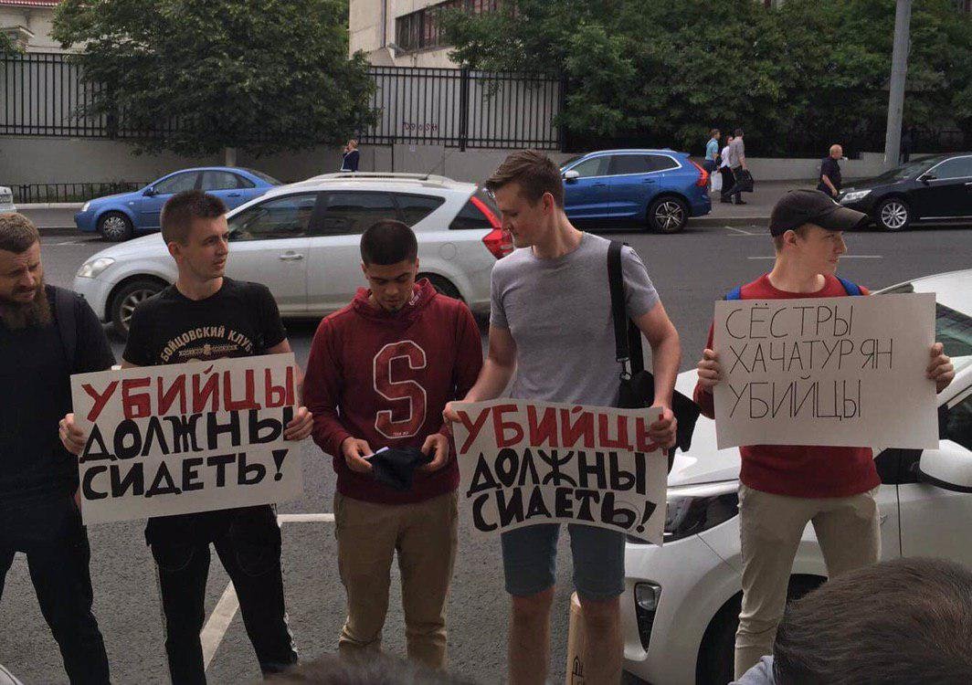 У Басманного суда перед заседанием по делу сестёр Хачатурян задержали людей с плакатами «убийцы должны сидеть»