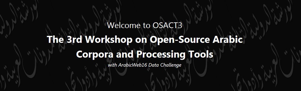 #دعوة_للمشاركة الورشة الدولية الثالثة للمدونات العربية وأدواتها المصاحبة لمؤتمر@lrec2018 تتميز الورشة في نسختها الثالثة بوجود تحدي عربي هو الأول من نوعه لاستخلاص مصادر لغوية لـ#اللغة_العربية#OSACT3#LREC2018 للمزيد يمكن زيارة موقع الورشة http://edinburghnlp.inf.ed.ac.uk/workshops/OSACT3/ …pic.twitter.com/eThGckyyr1