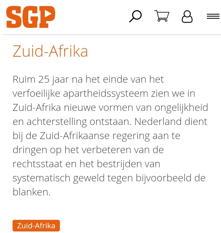 De SGP spreekt zich uit tegen het systematisch geweld jegens de blanke boeren in Zuid-Afrika! Ons sal dit oorleef