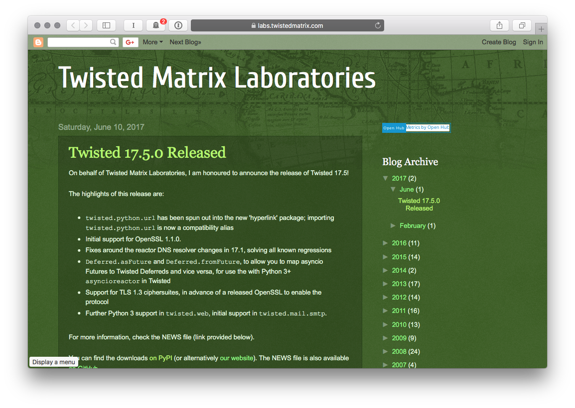 In honor of Blogger giving us HTTPS on our blog, we've spruced it up with a new theme. https://labs.twistedmatrix.com/ pic.twitter.com/b1TxWAnQvC