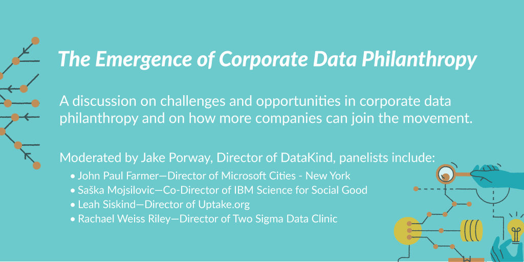 @tsdataclinic is hosting a talk on the emergence of corporate data philanthropy, featuring panelists from@Microsoft@IBM@Uptake and Two Sigma. Join us at our NYC offices on Wednesday, November 7th from 6 - 7 PM! RSVP here: http://ow.ly/UvzJ50jxA4O pic.twitter.com/8S1RNalTWu