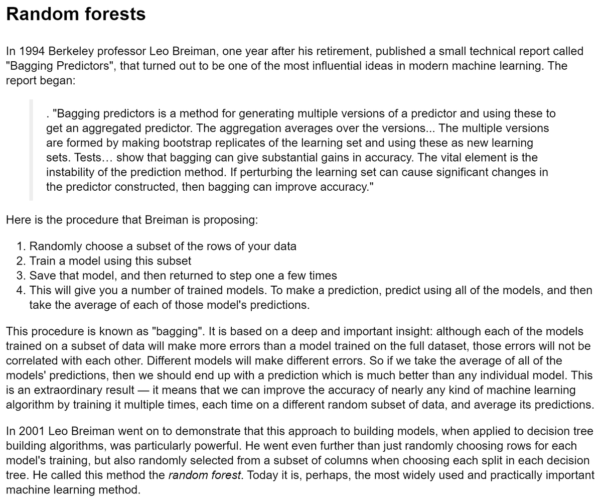 Did you know that Breiman published both the bagging and random forest papers *after* he retired?!? (This is from our forthcoming book: https://www.amazon.com/Deep-Learning-Coders-fastai-PyTorch/dp/1492045527 …)pic.twitter.com/07oAjxJgV3
