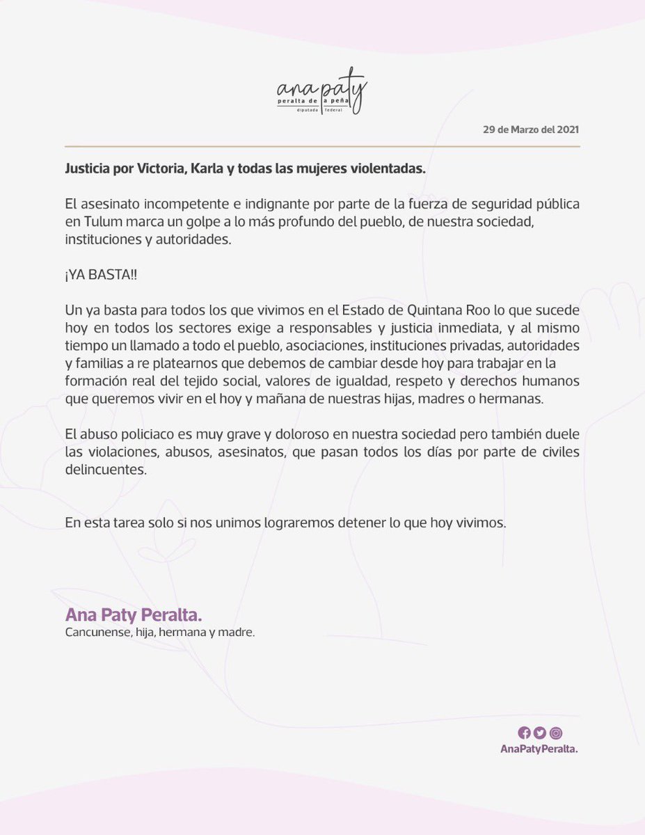 Esto es un llamado a sumarnos para ser vigilantes de la integridad de las mujeres y exigir a los responsables de nuestra seguridad, preparación, capacitación y protocolos adecuados para la protección de las mujeres.pic.twitter.com/D5iOjwft2V
