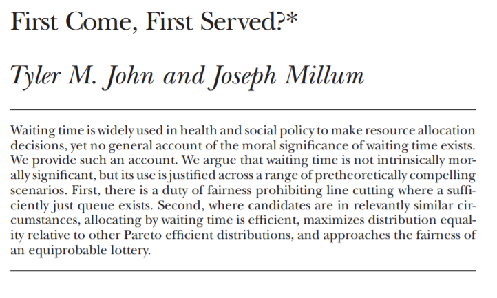 The January 2020 edition of Ethics is out, and with it my new article on waiting time with Joseph Millum! https://www.journals.uchicago.edu/doi/full/10.1086/705763 …pic.twitter.com/5UyDPR3OuL