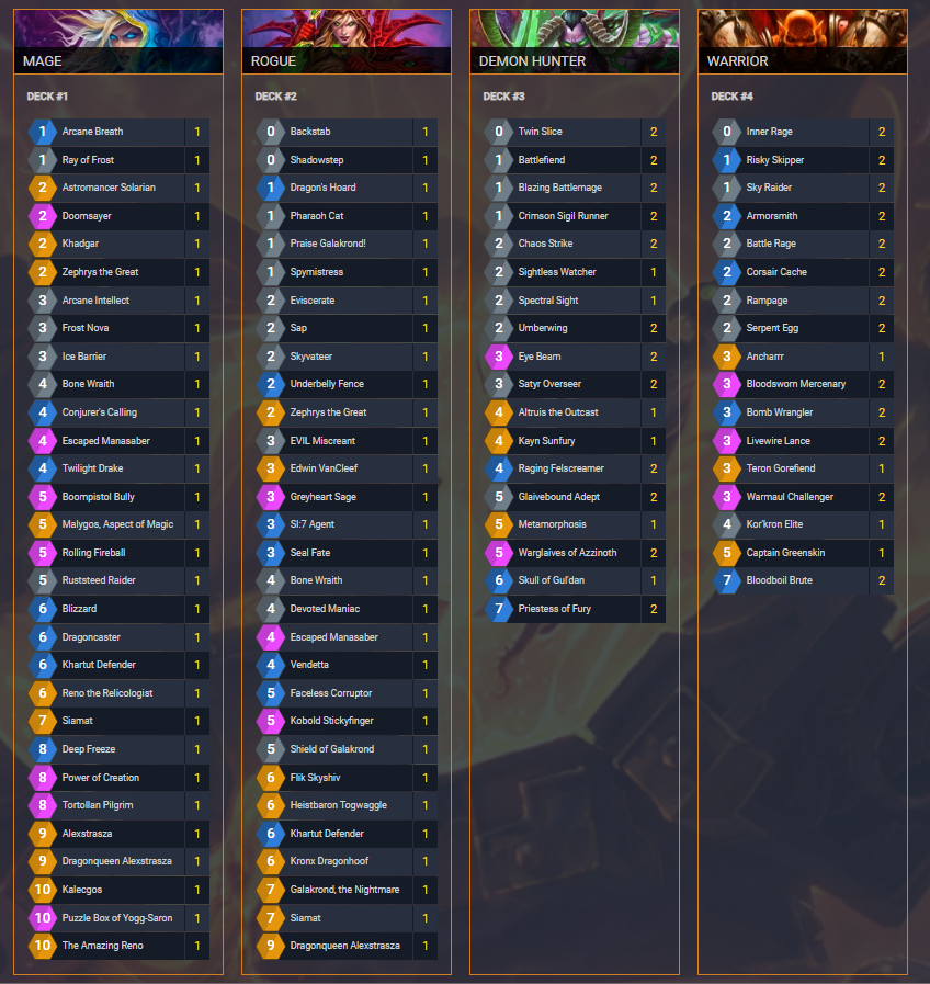 My lineup for todays Grandmaster matches.