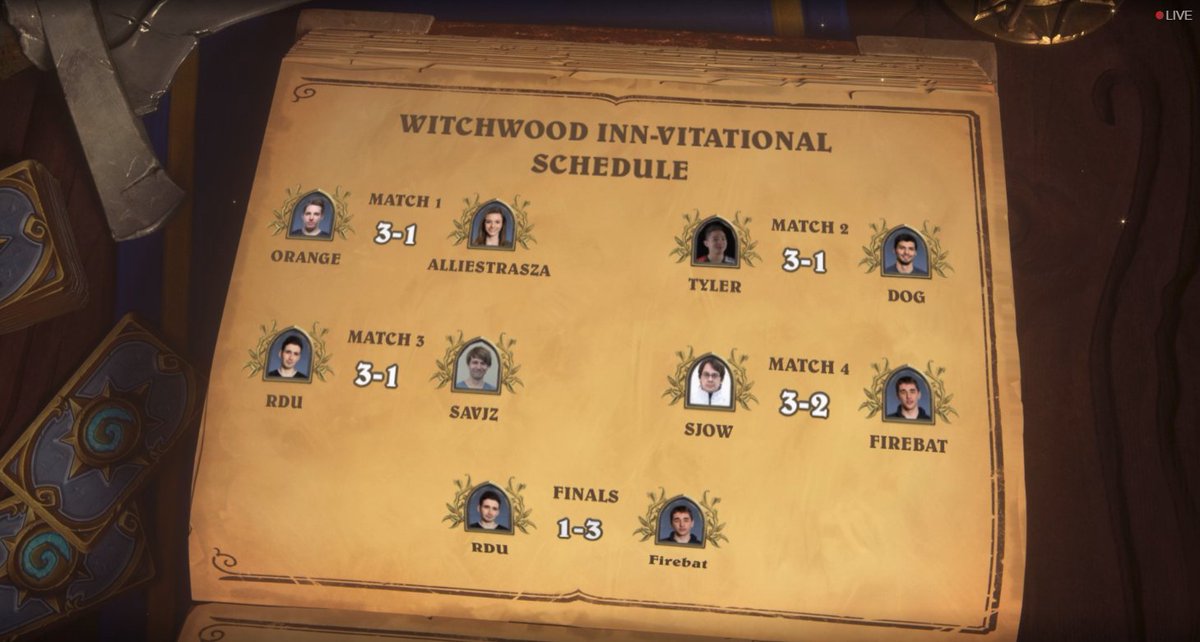 In case you missed the first few matches, here's how Europe did vs. Americas. GGs to all players! @HS_Orange @tylerootd @G2Rdu @LiquidSjow @firebat @F2K_Allie @Liquid_hsdog @Savjz Thanks for playing (and watching) the Witchwood Inn-vitational! pic.twitter.com/tZyogHubOC