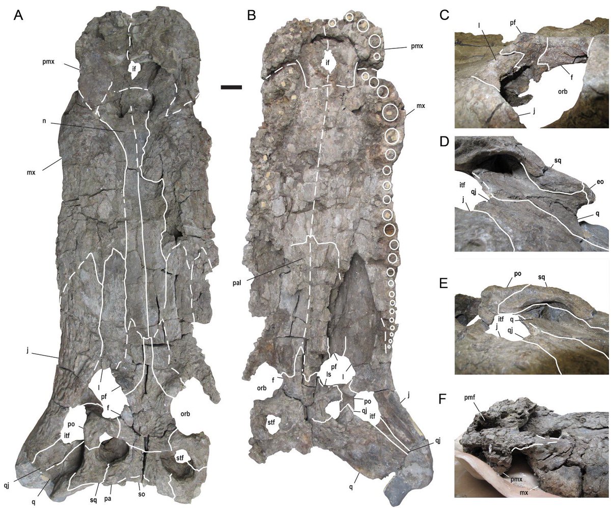 The skull of Deinosuchus is long, wide, and flattened. Its nasal bones, however, are extremely inflated, giving it a distinctive, bulbous nose.pic.twitter.com/6xI2oJyQpk