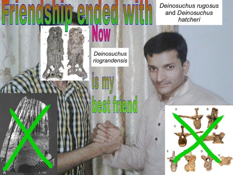 Because of this, Cossette and Brochu have petitioned for the type species to change to D. riograndensis. This allows for far more detailed comparisons that lead to cladoframs (family trees) that accurately show the three species to be separate. (Dumb meme by me. You’re welcome.)pic.twitter.com/CHmoahCNso