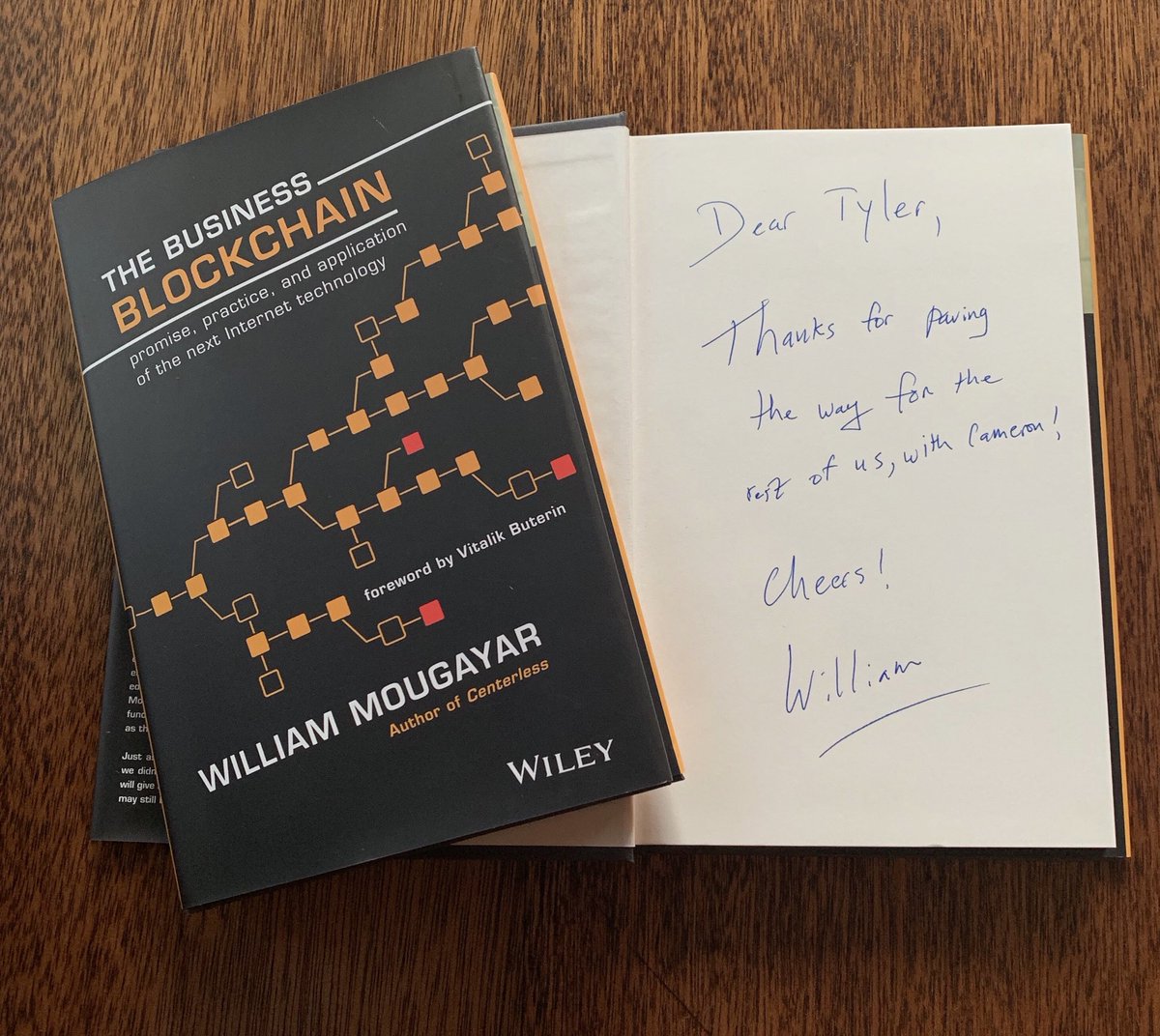 @wmougayar for sending me a copy of his book ‘The Business Blockchain’ with such a kind inscription! Can’t wait to read it!