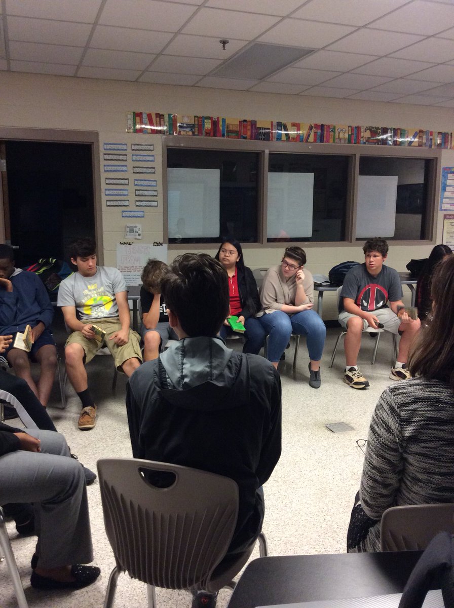 My 10th STEMmies having a LOTF campfire discussion over the text. Yes, the glasses are in the middle for a reason. I love letting them lead! #MYNCCA #NCSSbetheBESTpic.twitter.com/3FkbvOh1t0