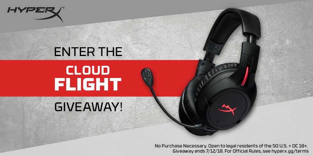 @HyperX for a chance to win 1 of 5 Cloud Flight Headsets.#HyperXGiveaway NoPurchNec. Ends July 12th, 2018. Rules: http://hyperx.gg/terms pic.twitter.com/AJz9zn06Nb