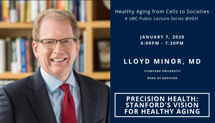 #UBC Public Lecture: "Precision Health: Stanford’s Vision for Healthy Aging" with@StanfordMed Dean Dr. Lloyd Minor. https://bit.ly/33XFMvQ@UBCKinpic.twitter.com/Ny3X8ZS7hf