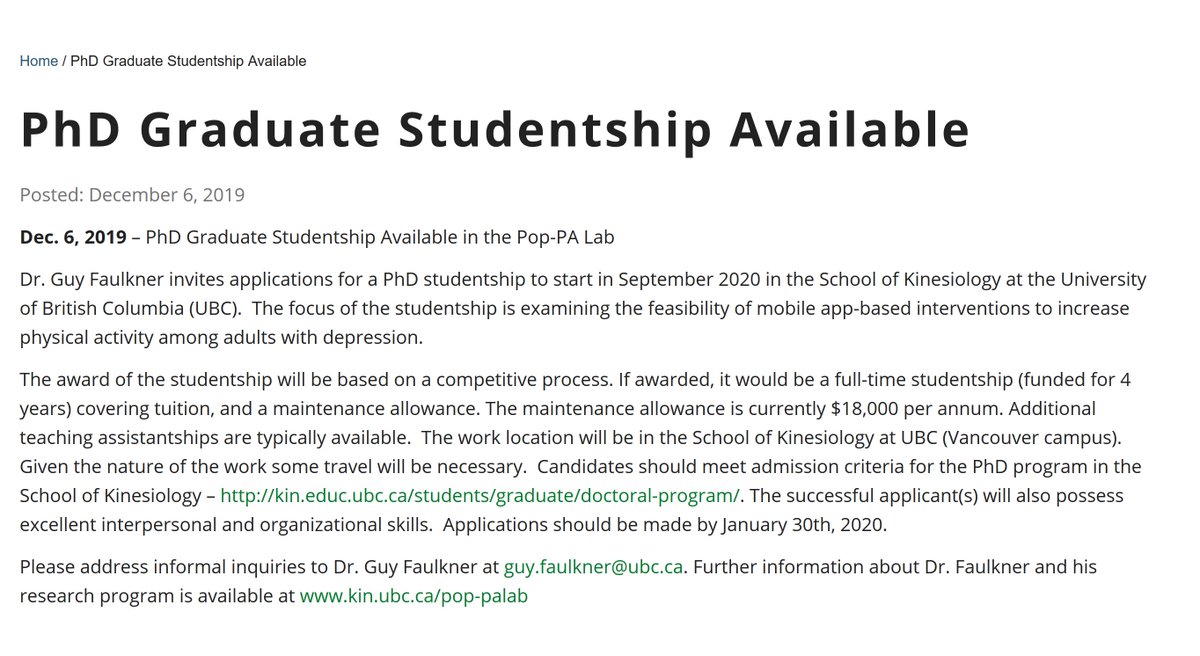 @PopPALabUBC. Applications due by January 30th, 2020. For more information check out https://kin.educ.ubc.ca/phd-graduate-studentship-available/ …pic.twitter.com/j11Ph0QZPl
