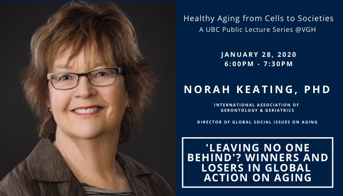 #UBC Public Lecture: "'Leaving No One Behind'? Winners and Losers in Global Action on Aging" with Norah Keating, PhD. https://bit.ly/36cjrfz@UBCKinpic.twitter.com/yyz5e6gkYH