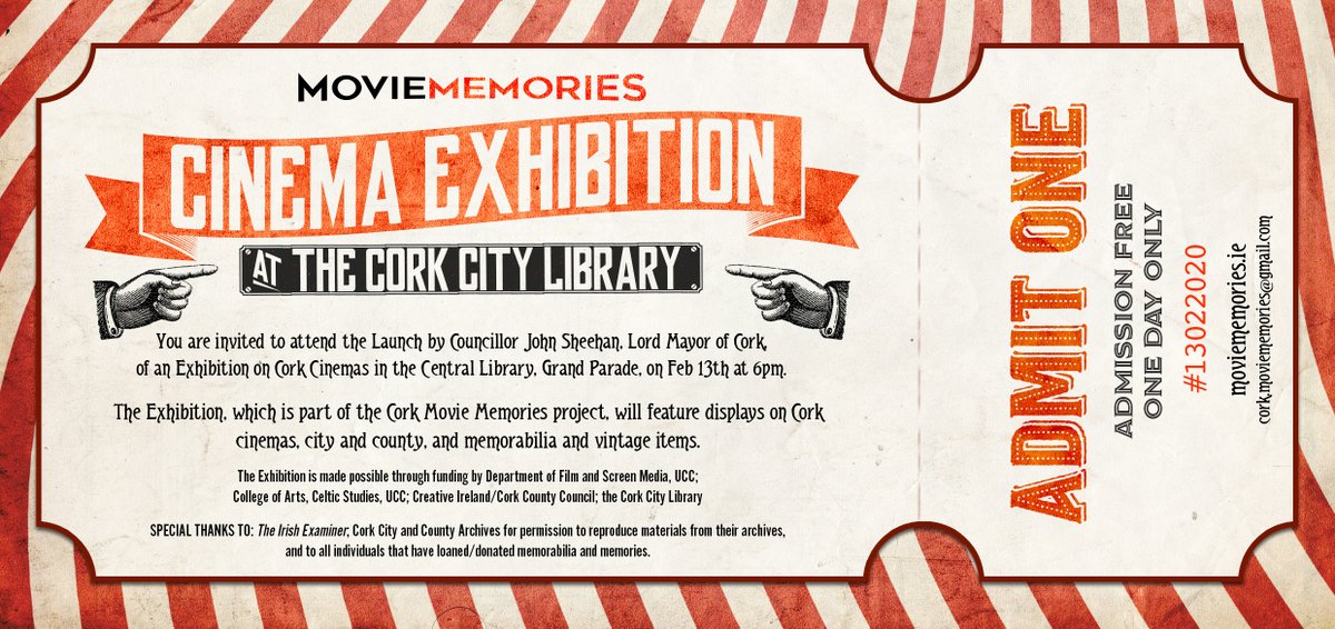 Calling all Cork movie fans! Join us on Feb. 13th for the grand opening of Cork Cinemas exhibition, opened by Lord Mayor, Cllr. John Sheehan!
