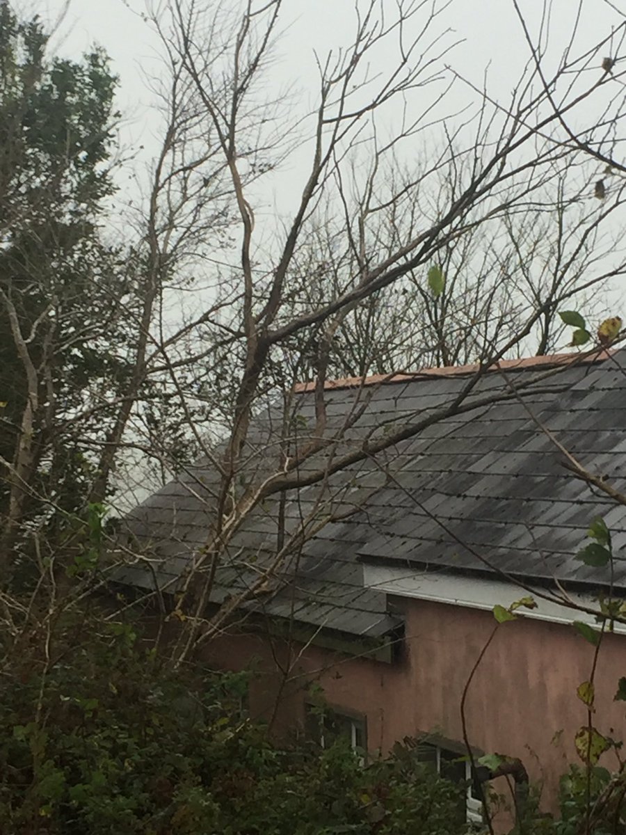 Tree down on the house. Luckily no real damage yet! Power gone now as well. Happy Days