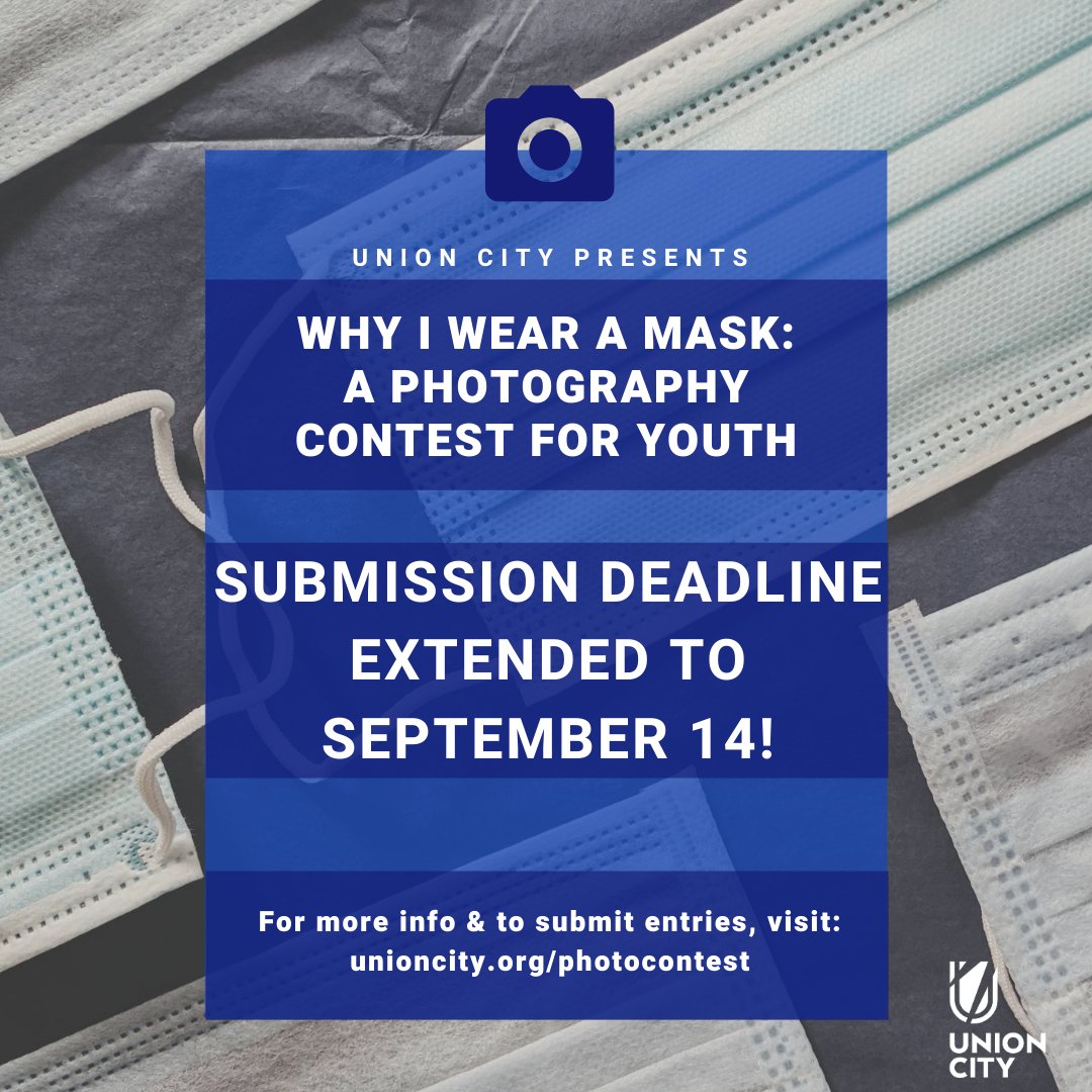 The deadline for the "Why I Wear A Mask" Photography Contest has been extended to September 14! Visit http://www.unioncity.org/photocontest for information on how to submit entries.pic.twitter.com/SCuGlhchCV