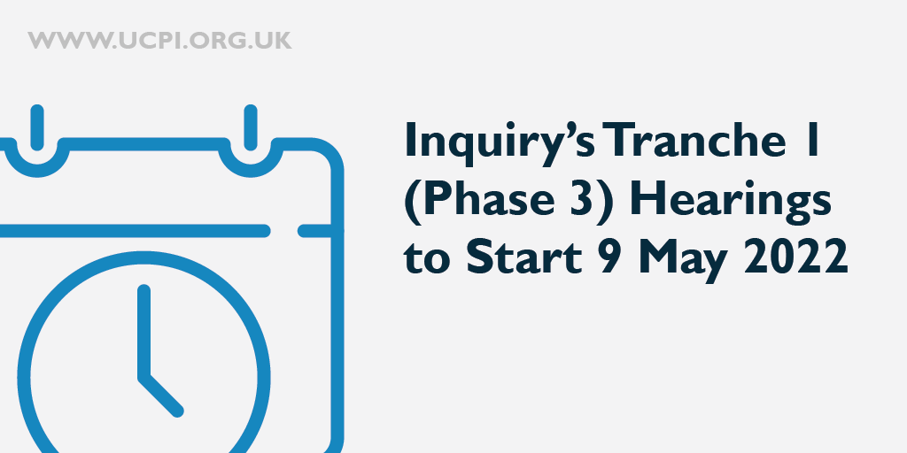 Inquiry’s Tranche 1 (Phase 3) evidence hearings to start on 9 May 2022pic.twitter.com/P4ev9cU0p8