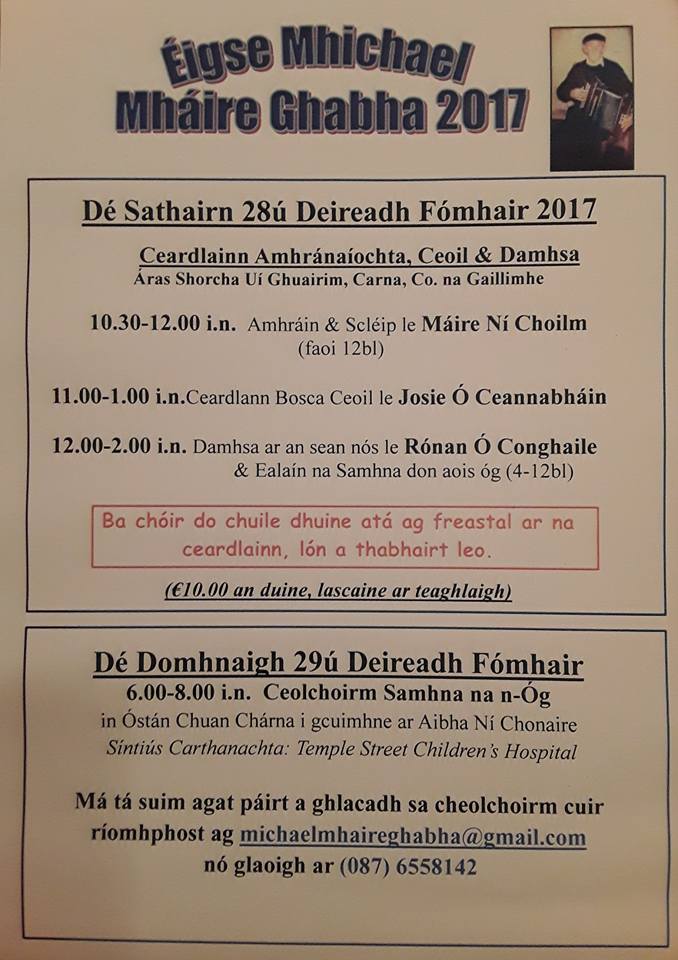 Beidh Éigse Mhichael Mháire Ghabha ar siúl an deireadh seachtaine seo i gCarna le neart amhráin, ceol agus damhsa.pic.twitter.com/W9s5UtAZJw
