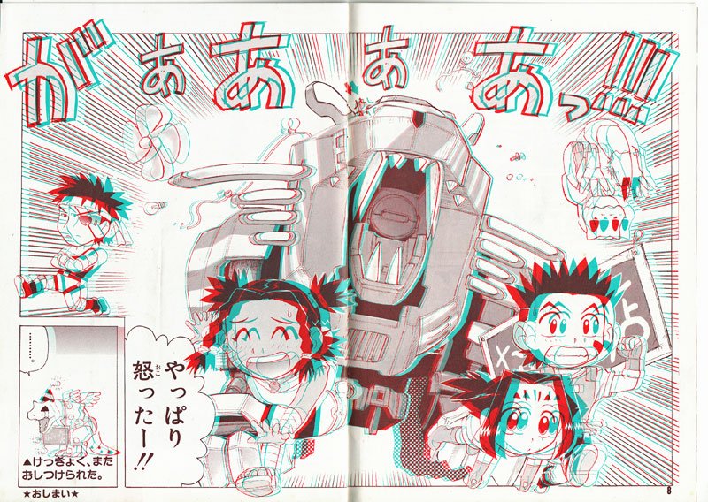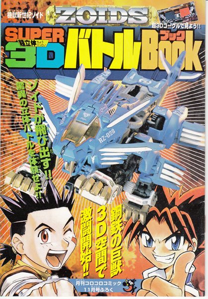 コロコロコミック平成12年11月号ふろく「SUPER3D(超立体)バトルBOOK」。 付属の赤青メガネで立体画を楽しもう、という企画。 上山道朗先生のコミックス未収録短編が載ってます。 (続く)