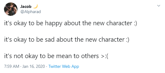 It's OKAY to be mad about the new Smash character! It's OKAY to be happy about the new Smash character! It's NOT OKAY to harass people about it. This is just a friendly reminder.