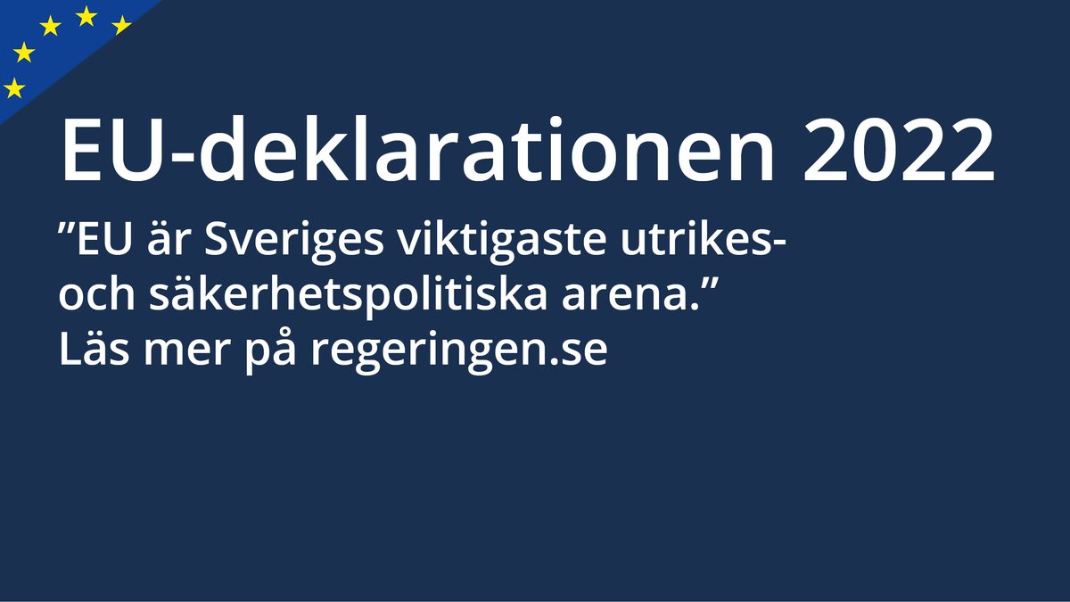 Regeringens EU deklarationen presenterades idag. Tråd följer: Börjar med att betona att EU är Sveriges viktigaste utrikespolitiska arena. Läs mer om vad Sverige tycker om EU:s säkerhetspolitiken här; https://journals.sagepub.com/doi/10.1177/17816858211004647 … https://ecfr.eu/publication/ambiguous-alliance-neutrality-opt-outs-and-european-defence/ … https://www.ui.se/globalassets/ui.se-eng/publications/ui-publications/2021/ui-paper-no.-4-2021.pdf … 1/https://twitter.com/SverigeiEU/status/1486248962751447040 …