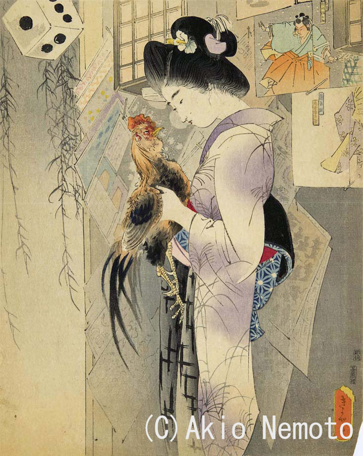 鏑木清方と泉鏡花は親しく交流していました。そのスタートとなるのが鏡花の小説『三枚続』。清方が鏡花の小説の口絵を初めて手がけます。夏という女性が、飼っている軍鶏に宵鳴きをしないよう叱っている場面。太田記念美術館で2/15より開催の「鏑木清方と鰭崎永朋」展で展示。泉鏡花ファンも注目です!pic.twitter.com/Dfknmflg7Y