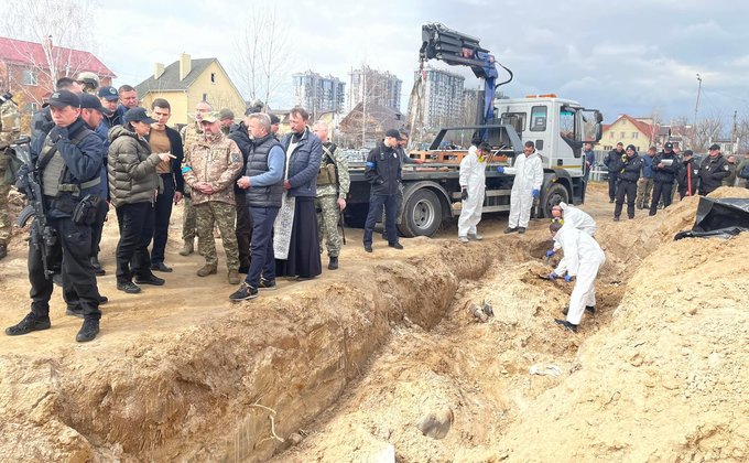 @vonderleyen and@JosepBorrellF in Bucha, watching exhumation of bodies from a collective grave..pic.twitter.com/cBTWdcghWb