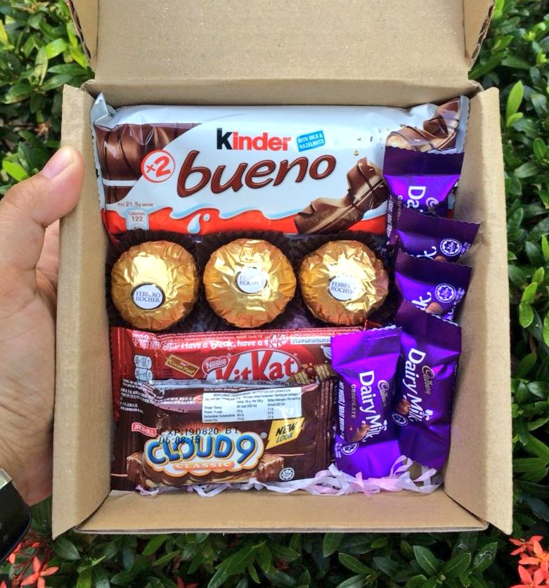 Surprise Box! (Ferrero Rocher, Kinder Bueno, Kit Kat, Cadbury & Cloud 9) Siapa je tak happy bila dapat sekotak coklat kan? Mesti tersenyum lebar