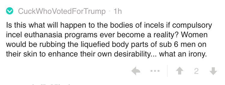 incels is absolutely one of the most fucked up places on reddit which is saying a lot