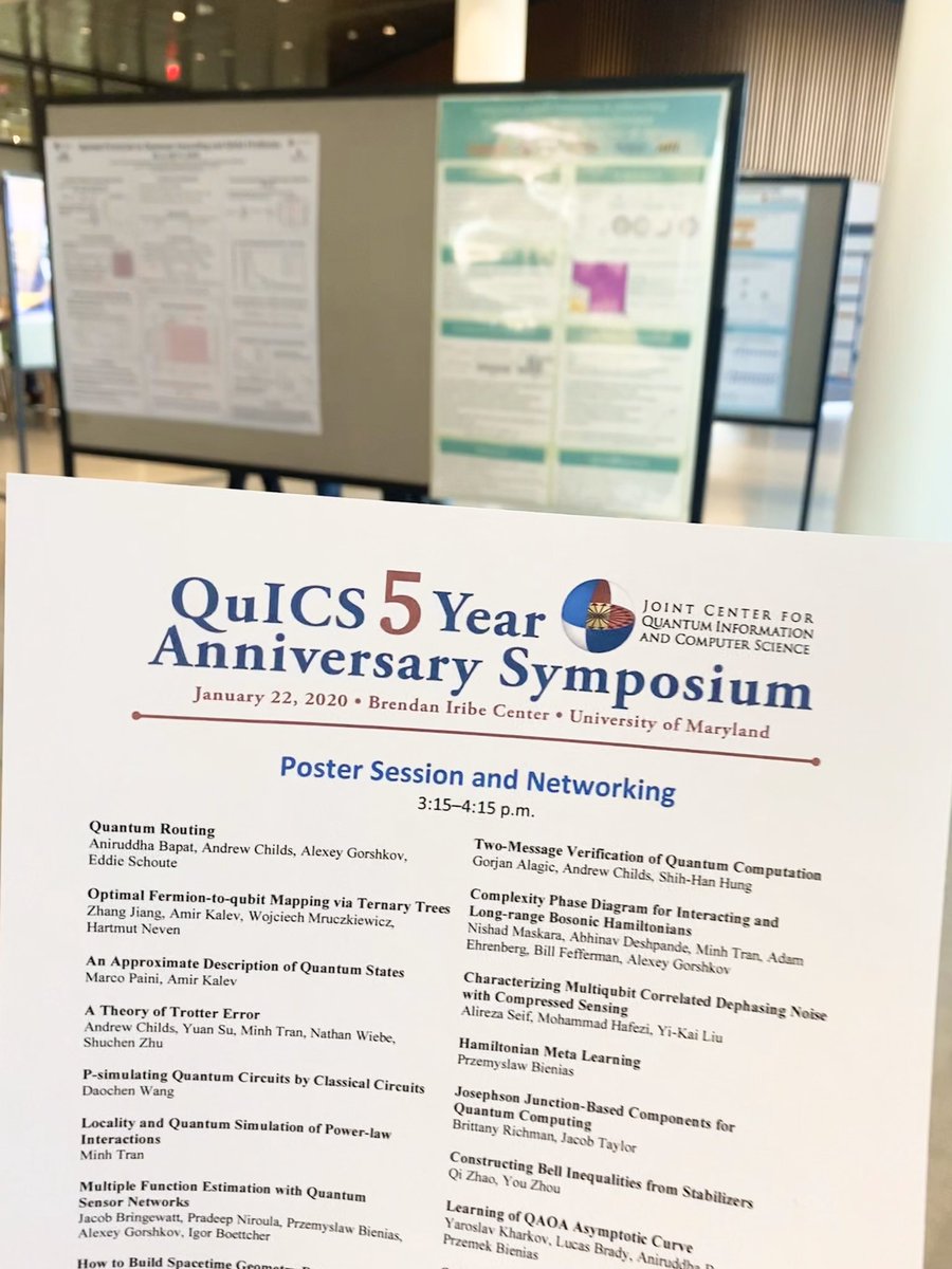 Don’t miss our poster and networking session coming up at 3:15 in the Iribe Center lobby. There are 20 research posters on quantum computing to learn about!