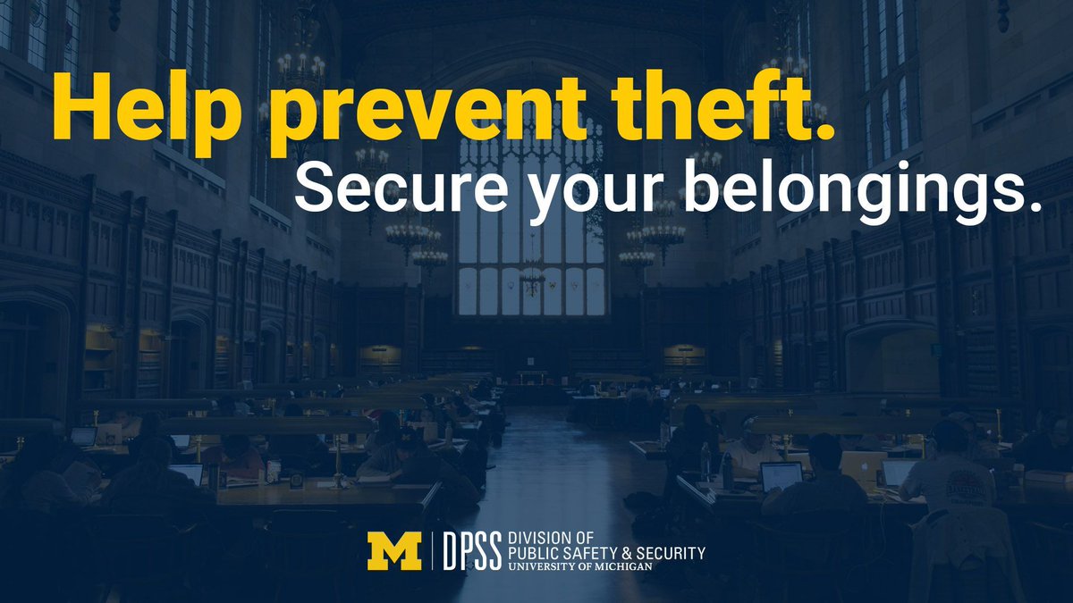 Remember to properly secure your computer, backpack, and other personal belongings while studying to help prevent theft!