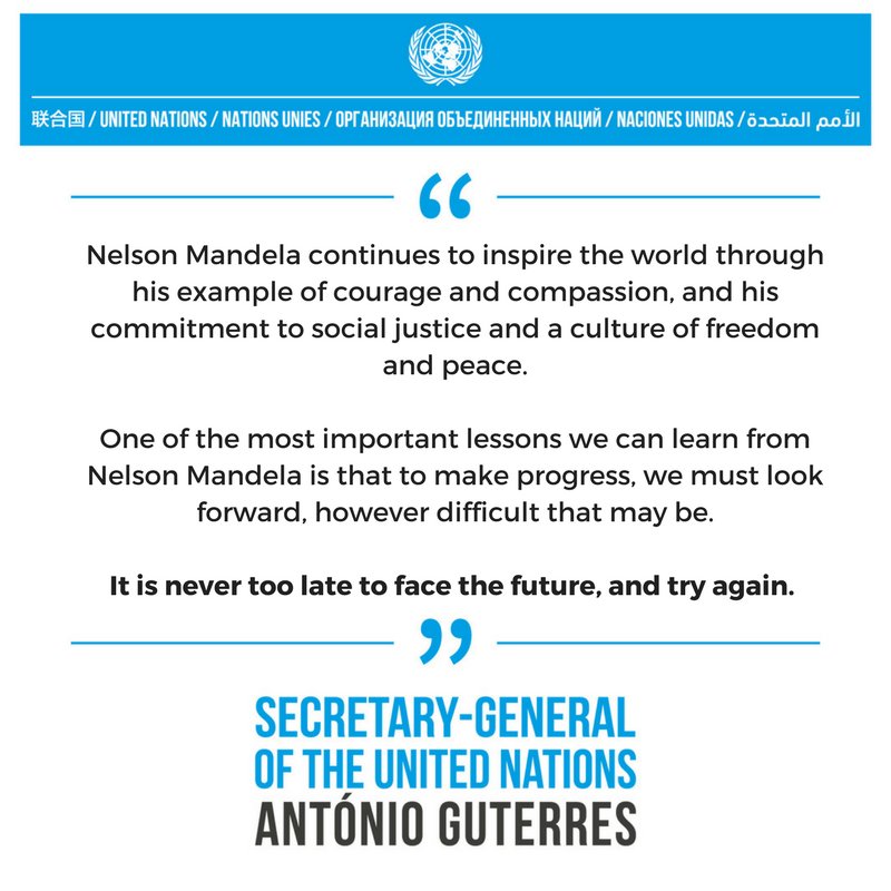 #MandelaDay & every day, Nelson Mandela's words inspire us to "ensure that democracy, peace & prosperity prevail everywhere."pic.twitter.com/xNyMFsStIjLook back at Nelson Mandela's visits to the United NationsEvery year on 18 July — the day Nelson Mandela was born — the UN asks individuals around the world to mark Nelson Mandela International Day (18 July) by making a difference in their communities.شكرًا. سوف يستخدم تويتر ذلك لتحسين خطك الزمني. تراجع عن -