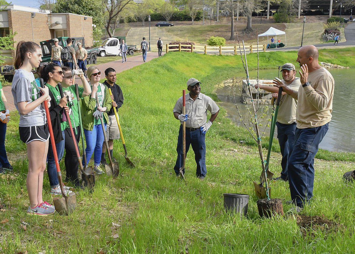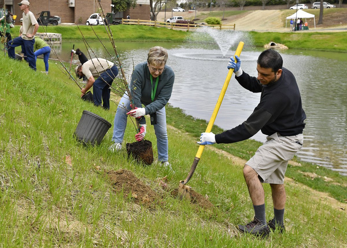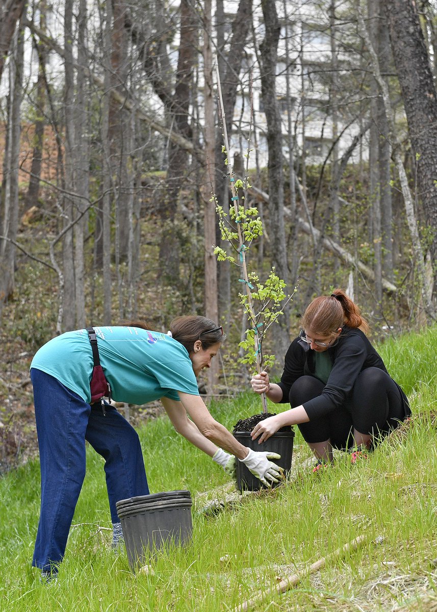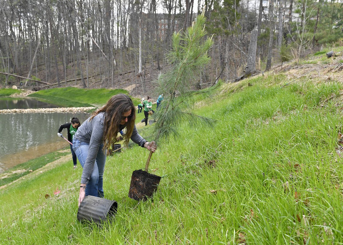 Student and staff volunteers continued the springtime tradition of large-scale campus tree planting on Wednesday by adding 57 red maple and pine trees by the newly re-engineered Davis Pond.