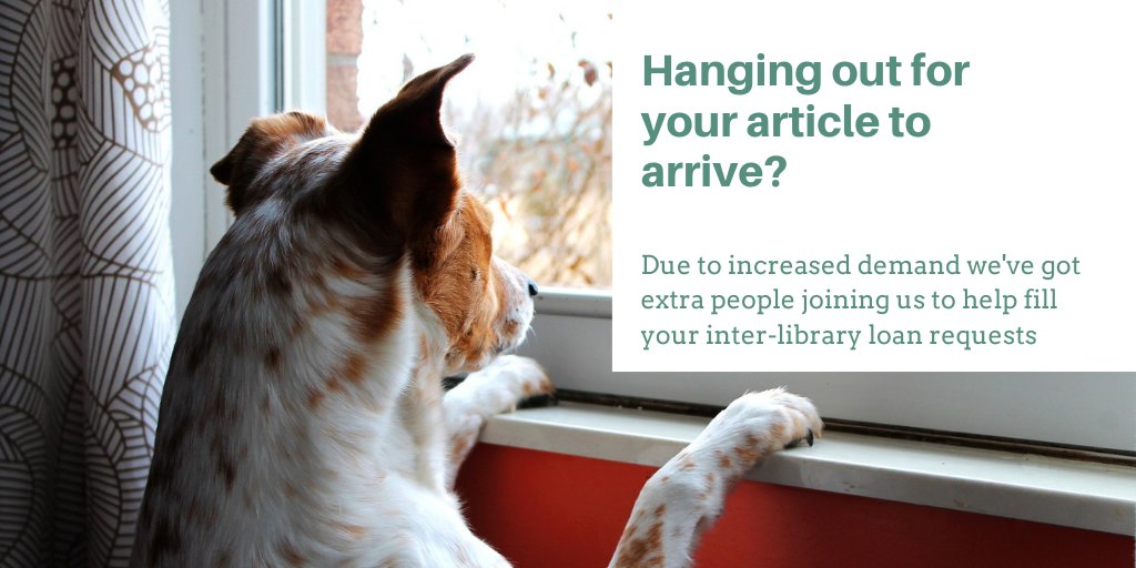 You may have been waiting longer for your inter-library loans lately due to increased demand. We are working hard to clear the backlog and even have some extra staff on board to help. Don't forget to cancel unwanted requests via your Borrowing Record. http://bit.ly/3jTNa3S pic.twitter.com/NaeeHaLeRL