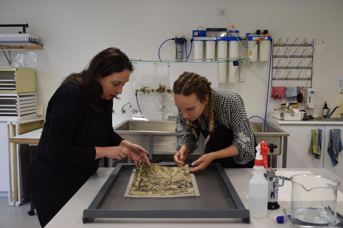 Student conservator Laura Daenke and Snr Paper Conservator treated the Albrecht