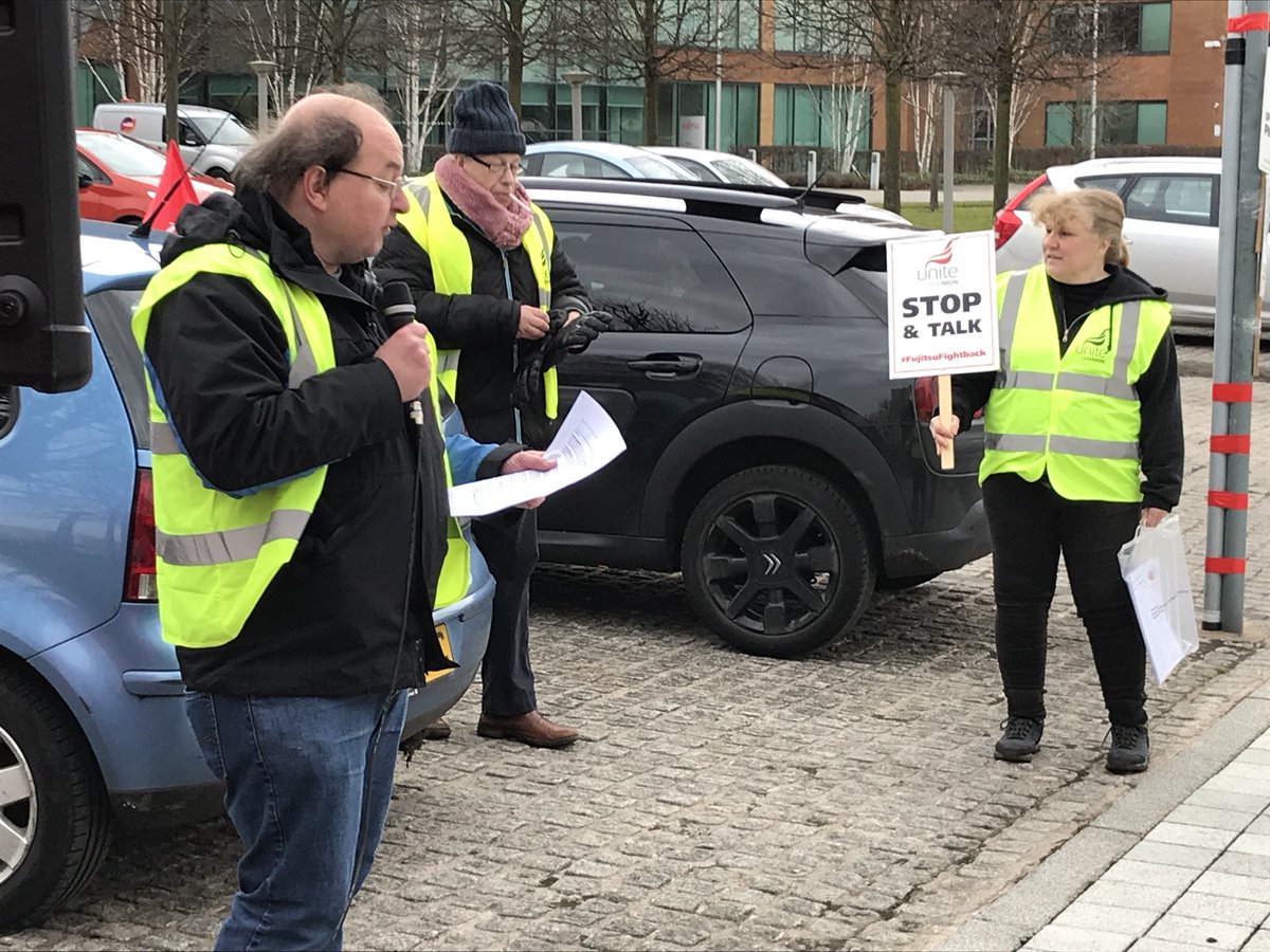 Fujitsu picket line this morning- still fighting redundancies and discrimination against TU reps